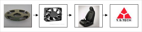 散熱用AC類馬達:2005年開始導入客戶百祥百瑞,此客戶主要生產電工電氣類散熱風扇.